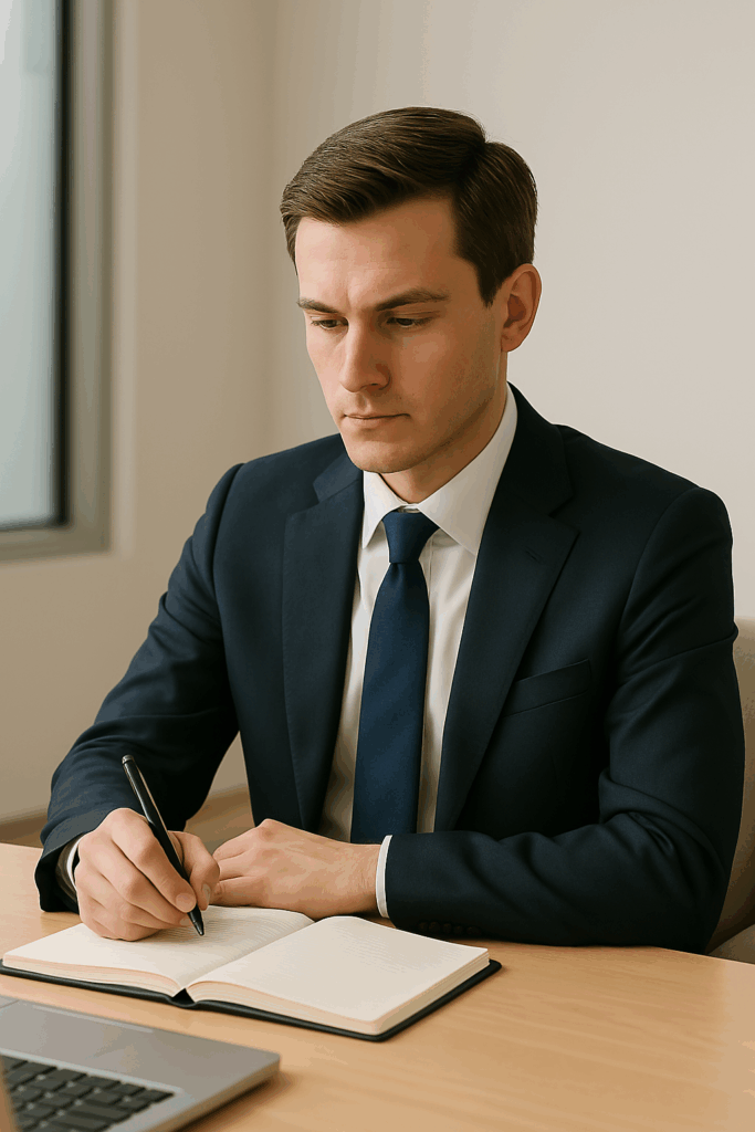 40代の働く男性が朝に頭と身体の状態を整えながらスケジュールを立てている様子