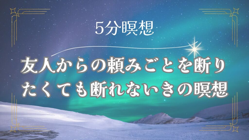 この瞑想の目的は、「友人からの頼みごとを断りたくても断れないときに、自分の気持ちを整理し、適切な判断をすること」です。