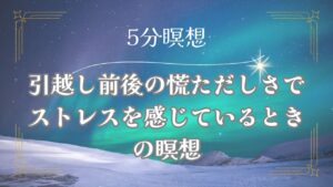 この瞑想の目的は、「引越し前後の慌ただしさによるストレスを和らげ、心の余裕を取り戻すこと」です。