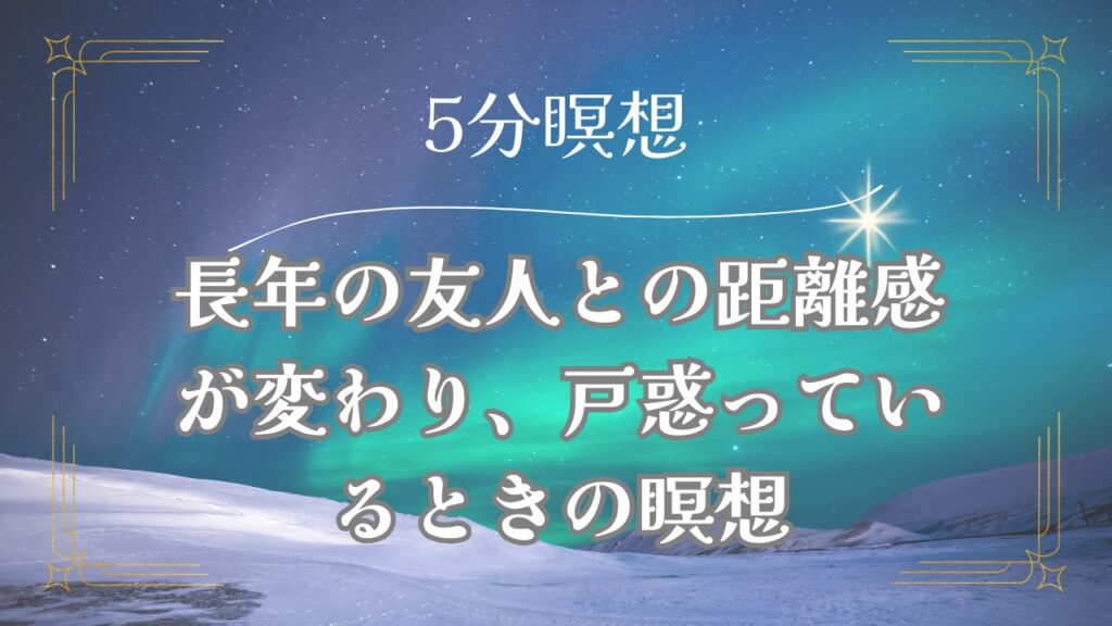 この瞑想の目的は、「長年の友人との距離感が変わったことによる戸惑いを受け入れ、自分自身の心を整えること」です。