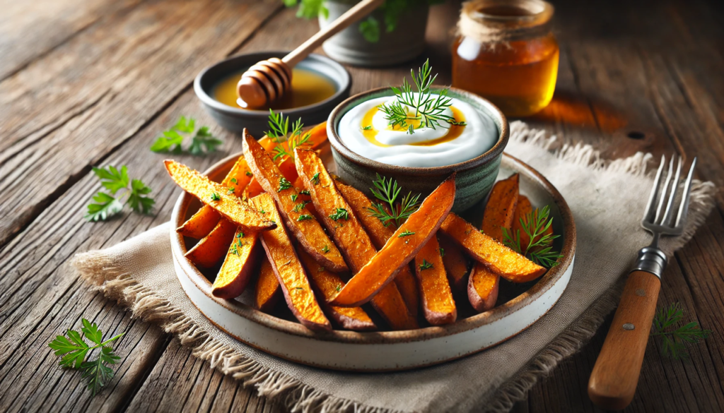 - さつまいもをスティック状に切り、スチームまたは電子レンジで柔らかくする。